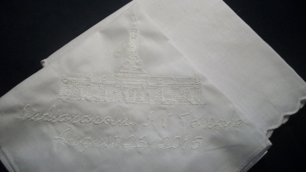 It will come with the Temple Picture and City. If you would like to add a special date or name to the handkerchief please see my other listings.